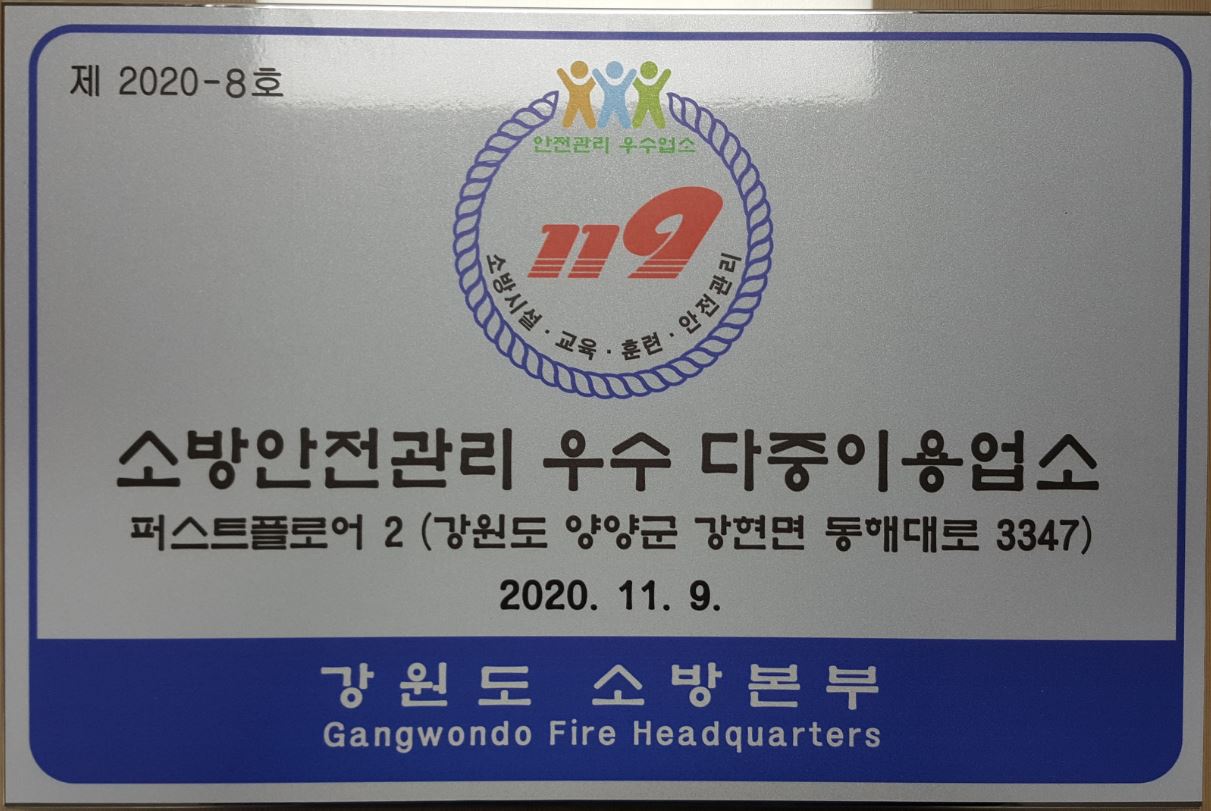 | 335 | 양양소방서, 안전관리 우수다중이용업소 인증 현판식 | 다중 | 2020-11-23 | 1310 | |